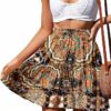 - Womens Smocking Waisted Flared Bohemian Skirt are made of 100% polyester skin-friendly premium fabric offers a smooth, low-friction performance, which feel more soft lightweight breathable easily as to provides maximized durability optimal comfort