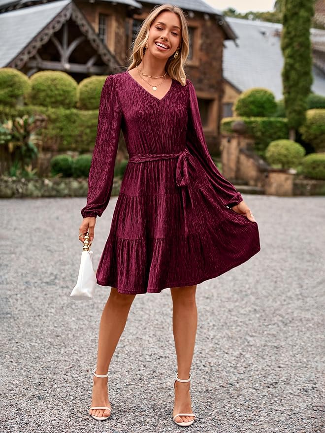 - Fabric – The long sleeve mini dress is made from high-quality ultra-soft lightweight velvet.Unlike heavy, bulky velvet styles, our thin velvet fabric feels airy and breathable.The fabric is infused with subtle luminous lurex threads that catch the light beautifully—adding a gentle, glamorous sheen without being overly flashy