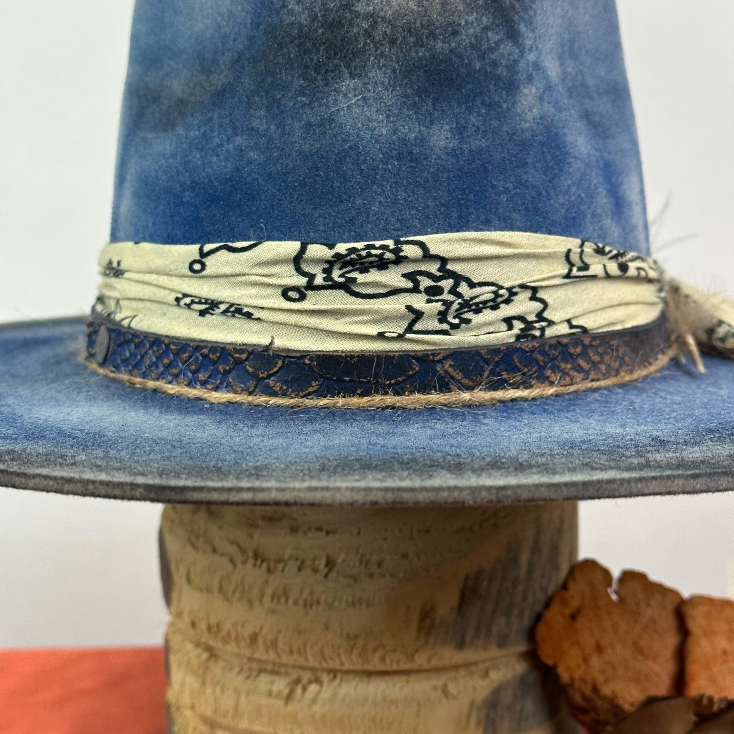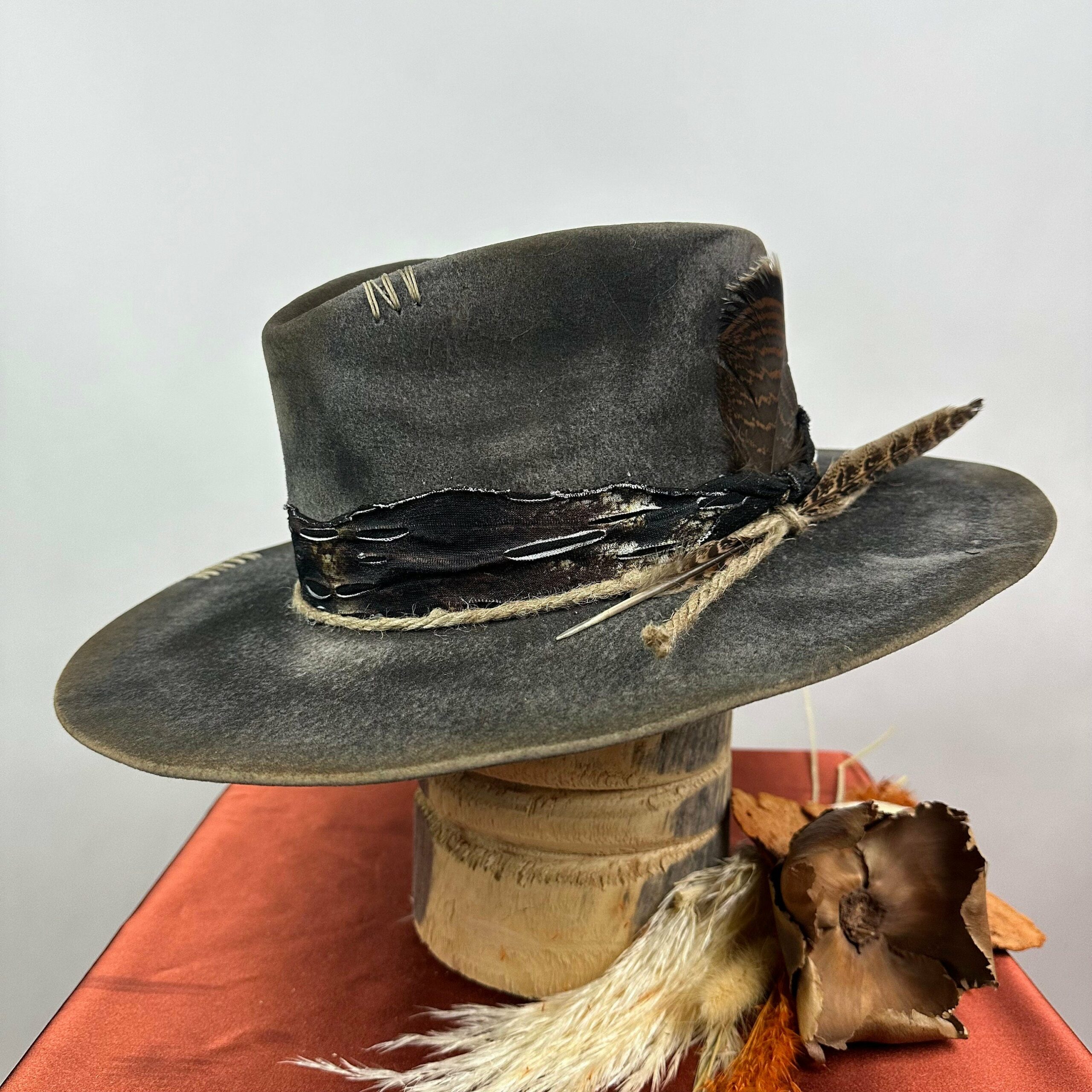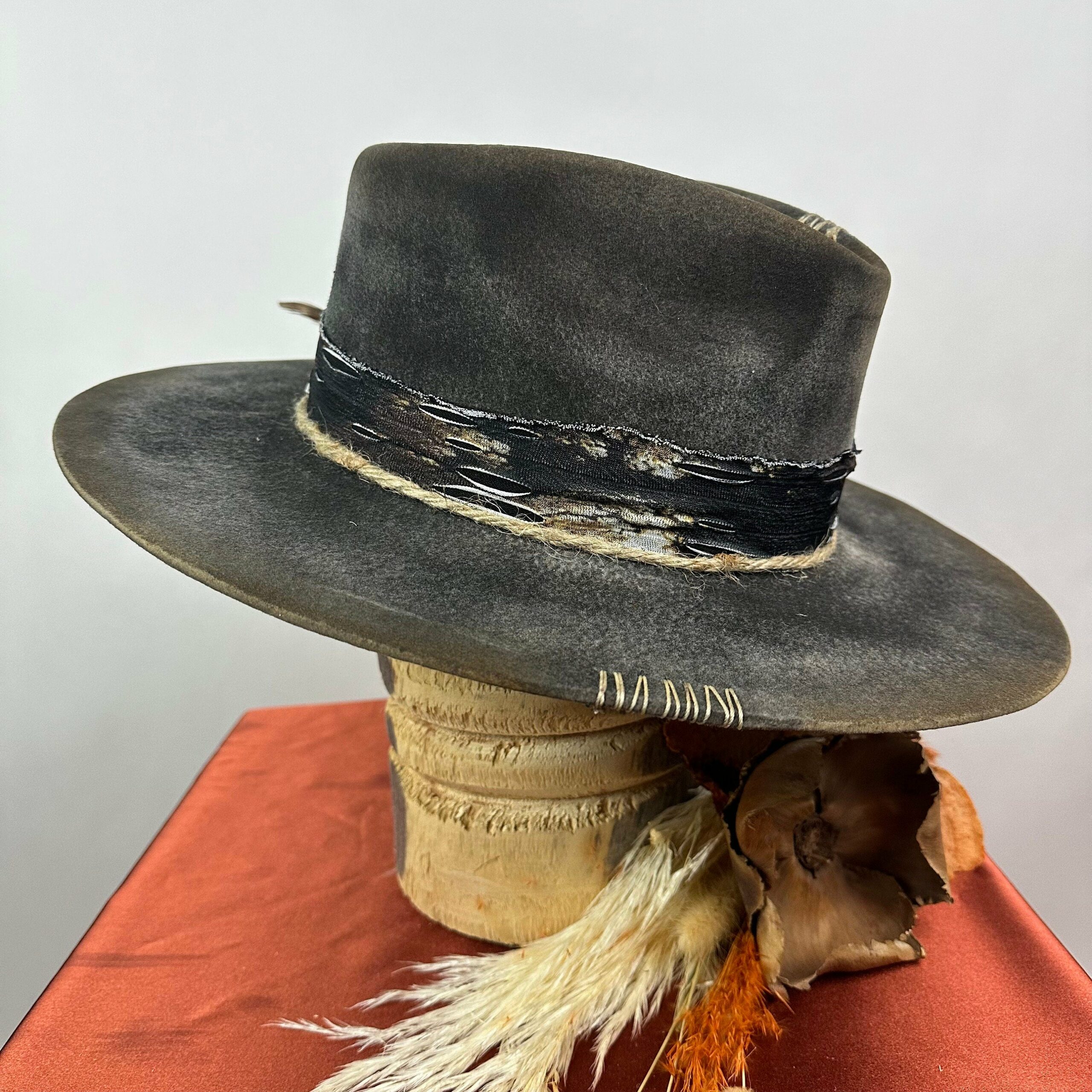 “Vintage Voyage Felt Fedora” is handcrafted, hand-dyed and hand-distressed. That means no two hats have the same color or character, making each hat truly one of a kind. Unique to each hat.
