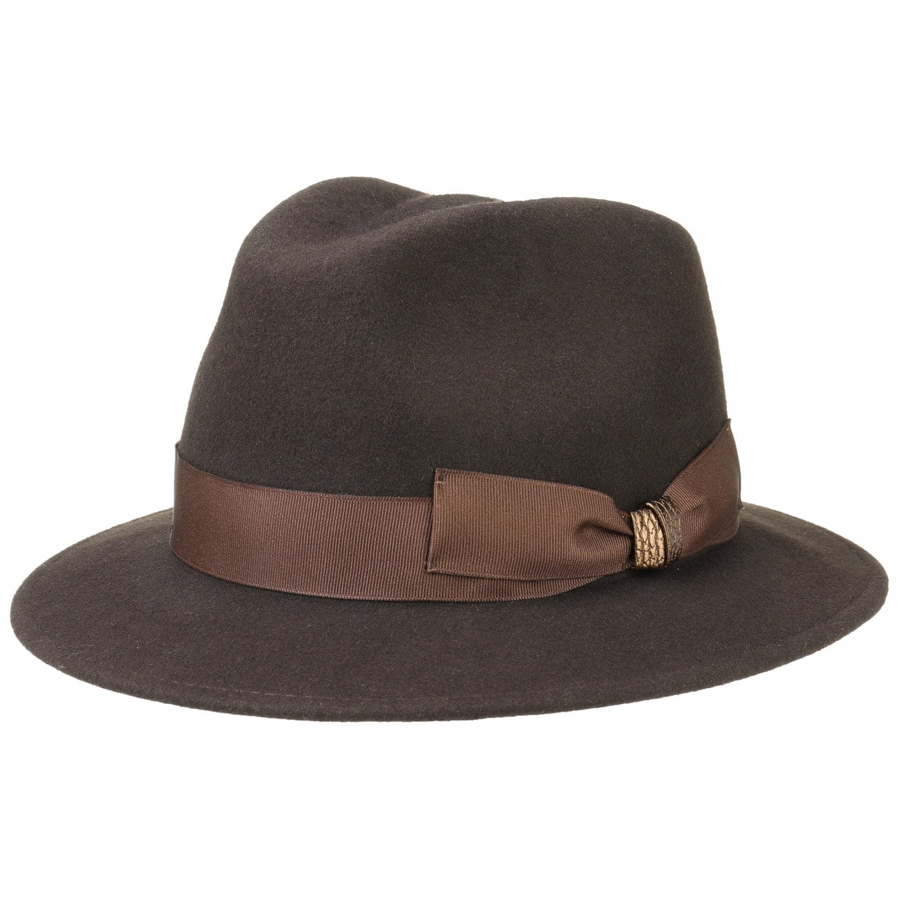 In a plain-coloured design, this wool hat shines and elegantly rounds off everyday outfits. A grosgrain ribbon bow in a subtle herringbone pattern underscores the hats elegant appearance. At the same time, this traveller proves itself to be extremely robust and hard-wearing. It owes its high quality to its material made of 100% felted wool. As lightweight as it is warm, it accompanies its wearer on a stroll through town or on their travels.